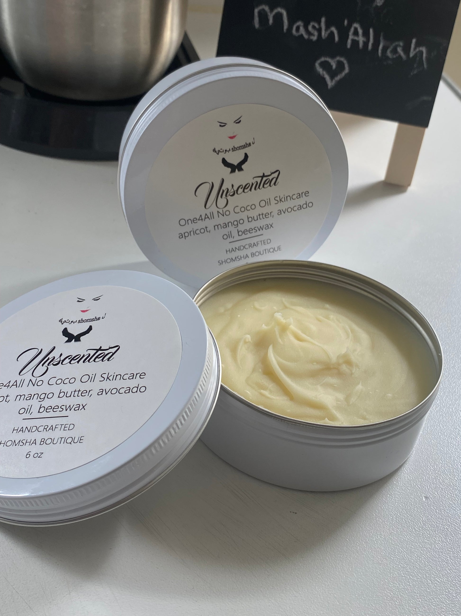 Handmade with 100% unfragranced natural ingredients. Our No Coconut Oil skincare is carefully crafted with a blend of butters providing potential benefits, such as soothing irritated skin; reducing inflammation and skin hydration.